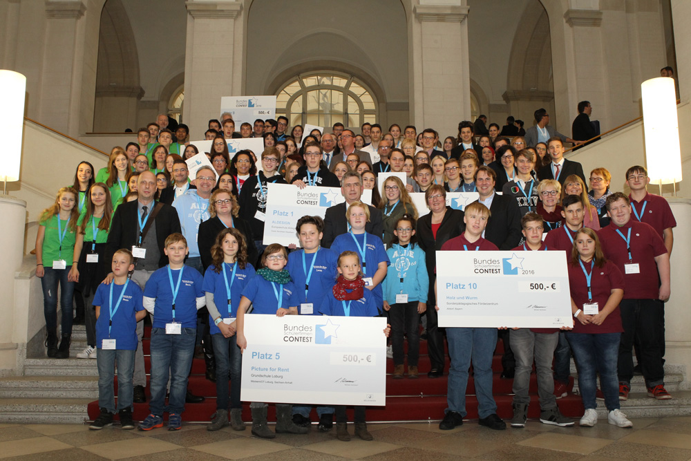 Preisverleihung 2016 in Berlin/BMWi: Die teilnehmenden Schülerfirmen sowie Vertreter aus Wirtschaft und Politik(Foto: Müller Medien GmbH & Co. KG)