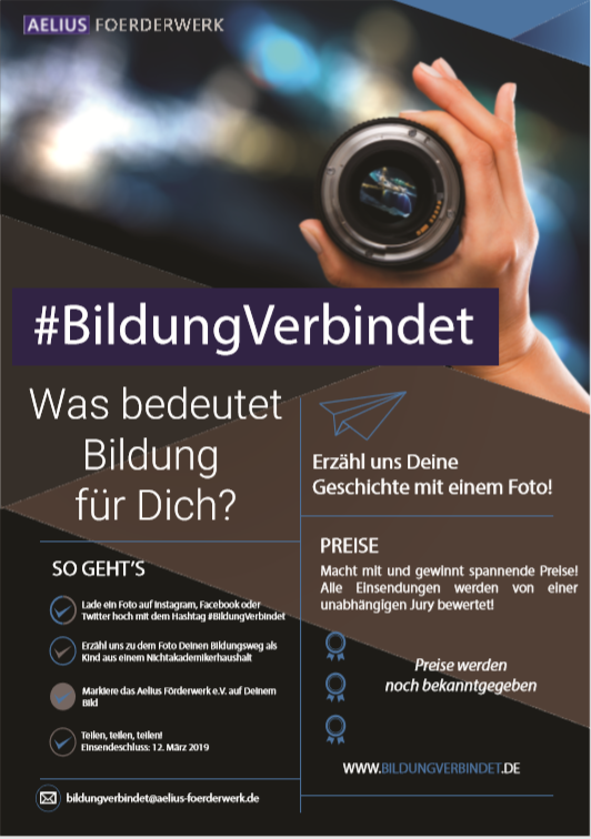 Ziel des Foto-Wettbewerbs ist es SchülerInnen, Studierende, Auszubildende und Berufstätige aus Nichtakademikerhaushalten, die Möglichkeit zu geben, in Form eines Beitrags auf Facebook, Instagram oder Twitter die Geschichte ihres Bildungsweges zu erzählen und über die Chancen und Ziele zu berichten, die sich für sie ergeben haben oder noch werden.