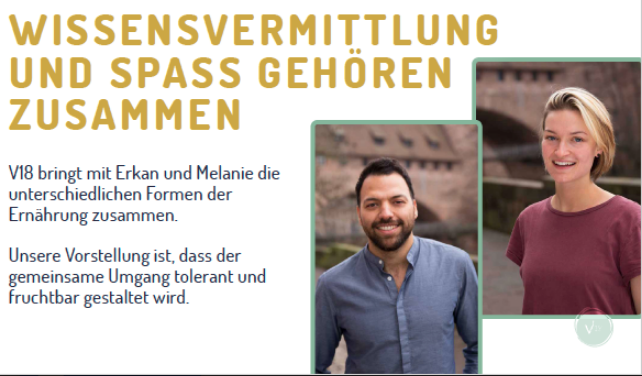 Die pflanzliche Ernährung wird von der FF-Agentur als ein Anziehungsmagnet eingschätzt, sowohl für Befürworter, als auch für Neugierige. Um trotz allem zu gewährleisten, dass das Festival an Reichweite gewinnt, veröffentlicht und verteilt die FF-Agentur das V18 Magazin zwei Wochen vorher. Das Magazin enthält alle Programmpunkte und Wissenswertes über die teilnehmenden Aussteller.